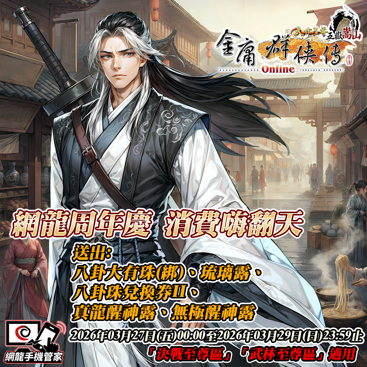 邀請各位金庸玩家一同共襄盛舉,享受滿滿好禮與超值回饋,讓你玩得盡興、拿得開心,福運加倍、驚喜不斷!